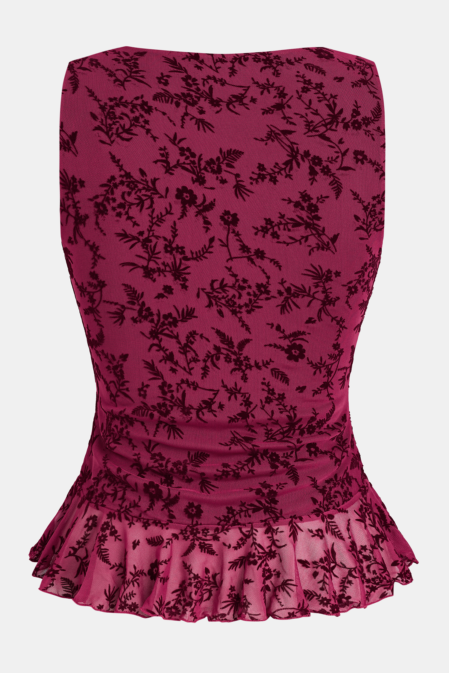Ce top dégage une allure décontractée et des détails espiègles ! Avec son col en V, ses volants et sa coupe sans manches, il rehausse instantanément n’importe quelle tenue.